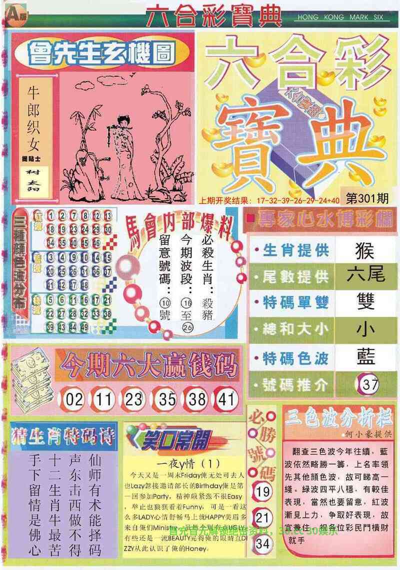 | 301期:澳门六合彩寶典解特开(牛05) |